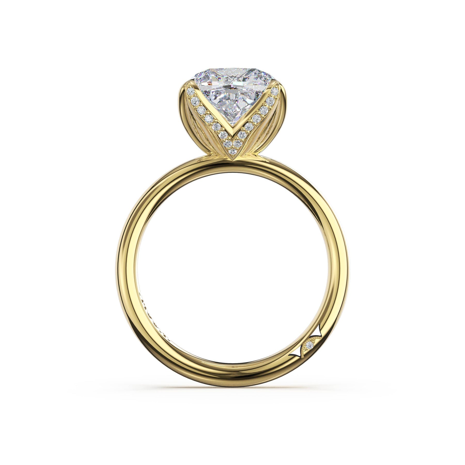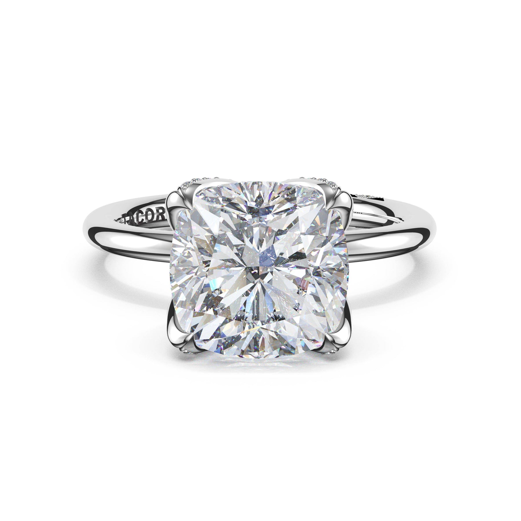 | Additional Description | Deconstructed Dahlia petals transform into eagle claw prongs, traced in pavé diamonds as they secure a cushion-cut center stone. Structure meets fluidity in sculptural balance on a high-polish foundation. |