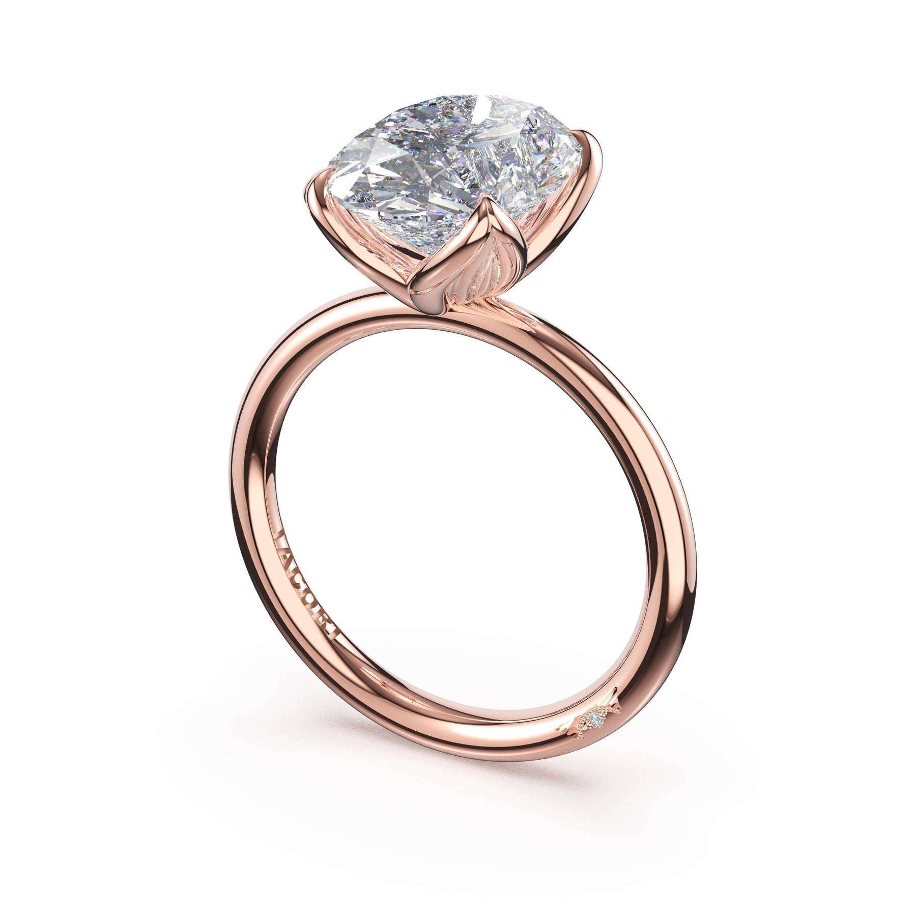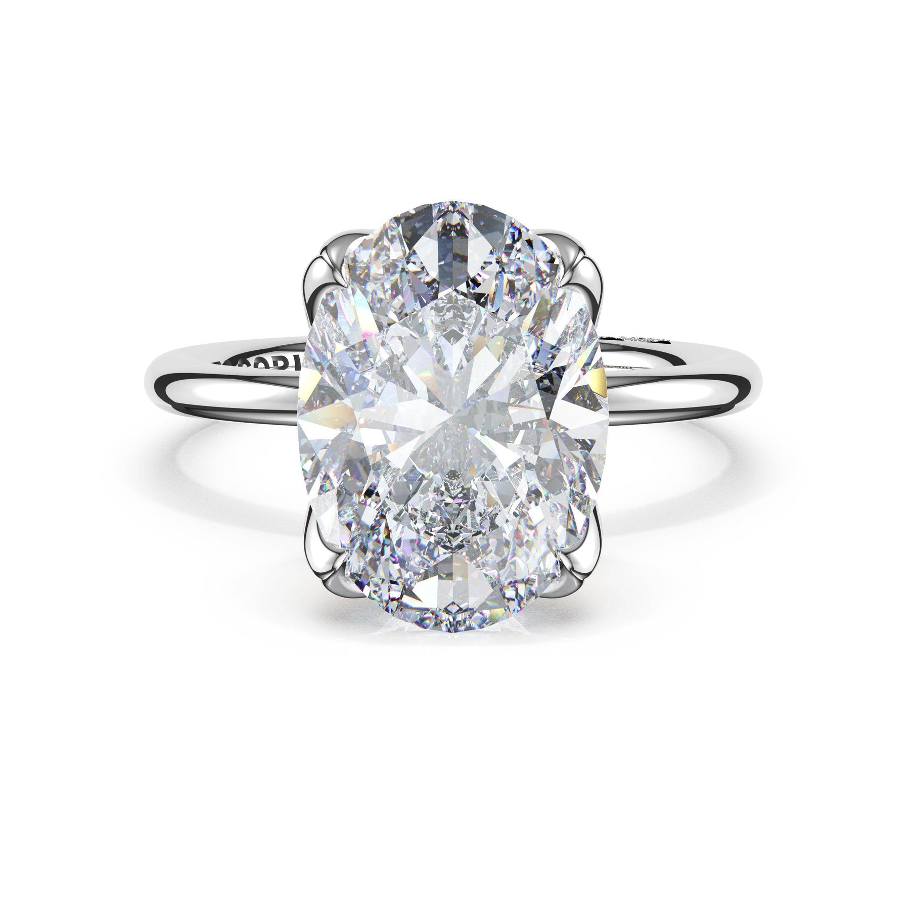 | Additional Description | Deconstructed dahlia petals cradle a oval-cut center stone in organic curves. Soft edges and natural movement emerge from the high-polish foundation. |