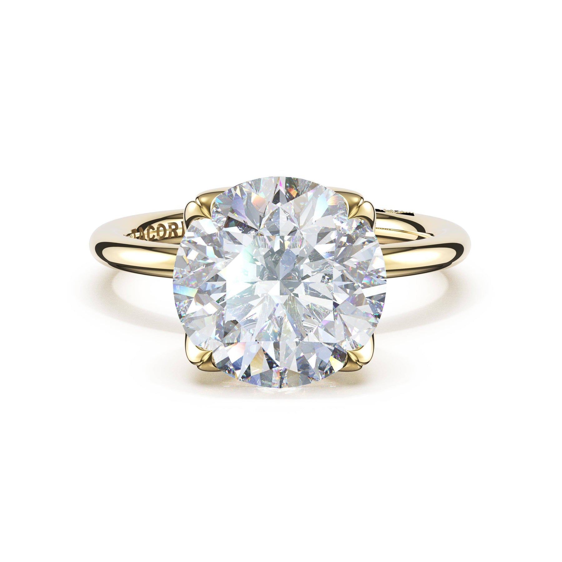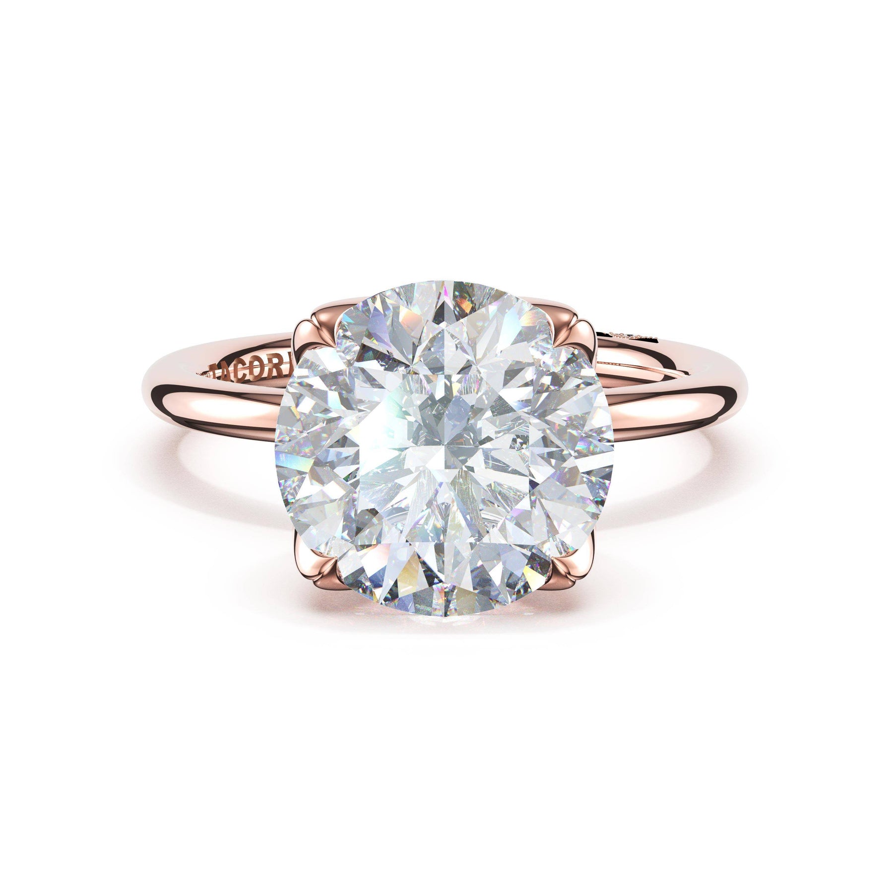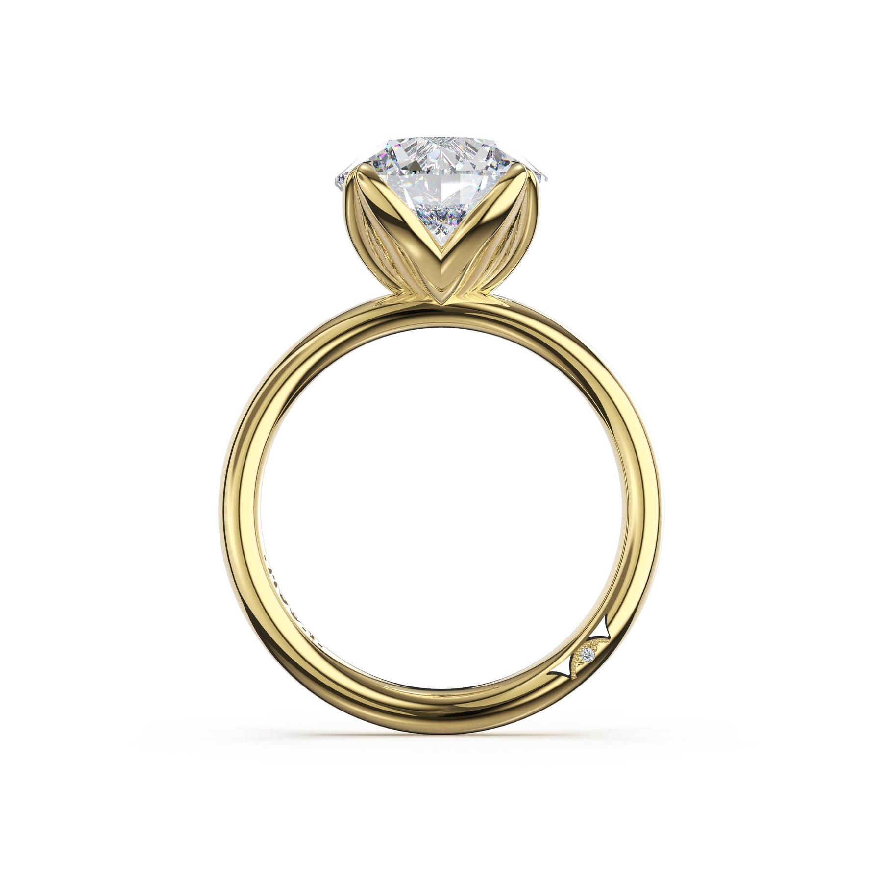 | Additional Description | Deconstructed dahlia petals cradle a round-cut center stone in organic curves. Soft edges and natural movement emerge from the high-polish foundation. |